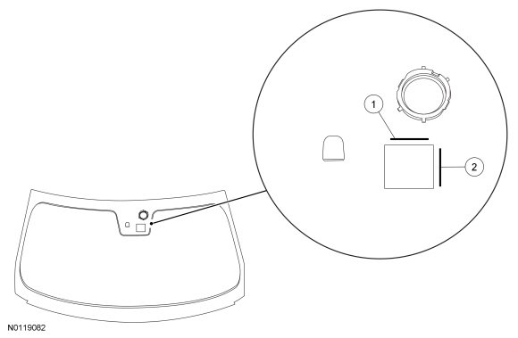 Apply the HCM-2 (Headlamp Control Module 2) mounting bracket onto the windshield making sure that the inner edges of the bracket are aligned to the locator lines as shown.