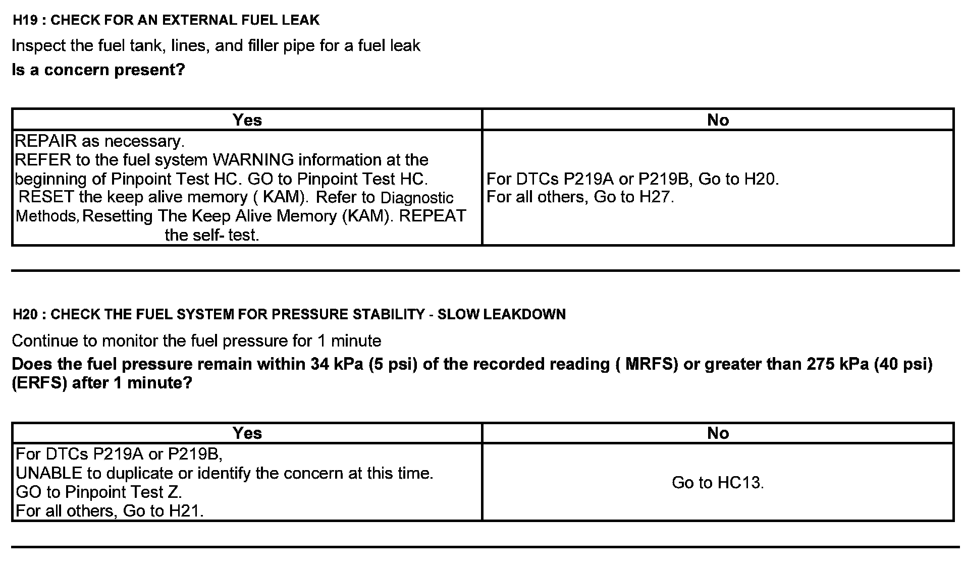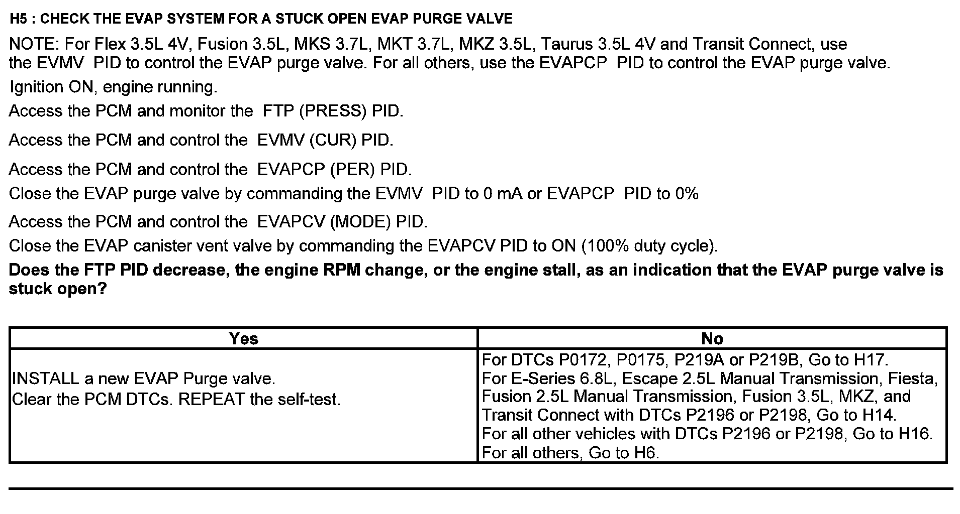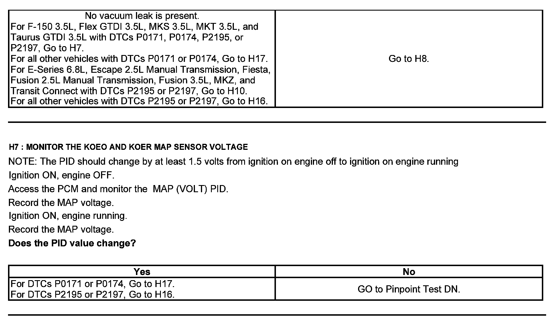 Home >> Ford >> 2012 >> Taurus FWD V6-3.5L >> Repair and Diagnosis >> Powertrain Management >> Computers and Control Systems >> Testing and Inspection >> Pinpoint Tests >> Test H: Fuel Control