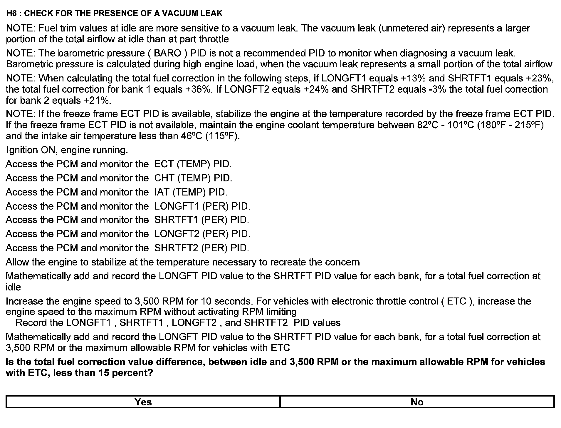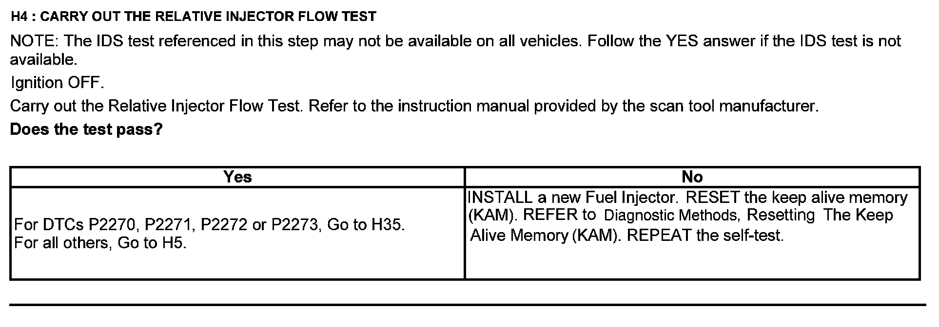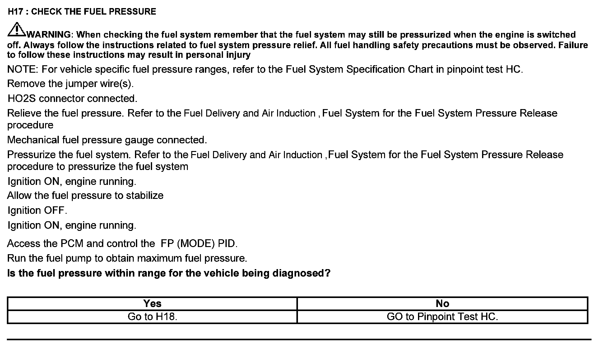Home >> Ford >> 2012 >> Taurus FWD V6-3.5L >> Repair and Diagnosis >> Powertrain Management >> Computers and Control Systems >> Testing and Inspection >> Pinpoint Tests >> Test H: Fuel Control