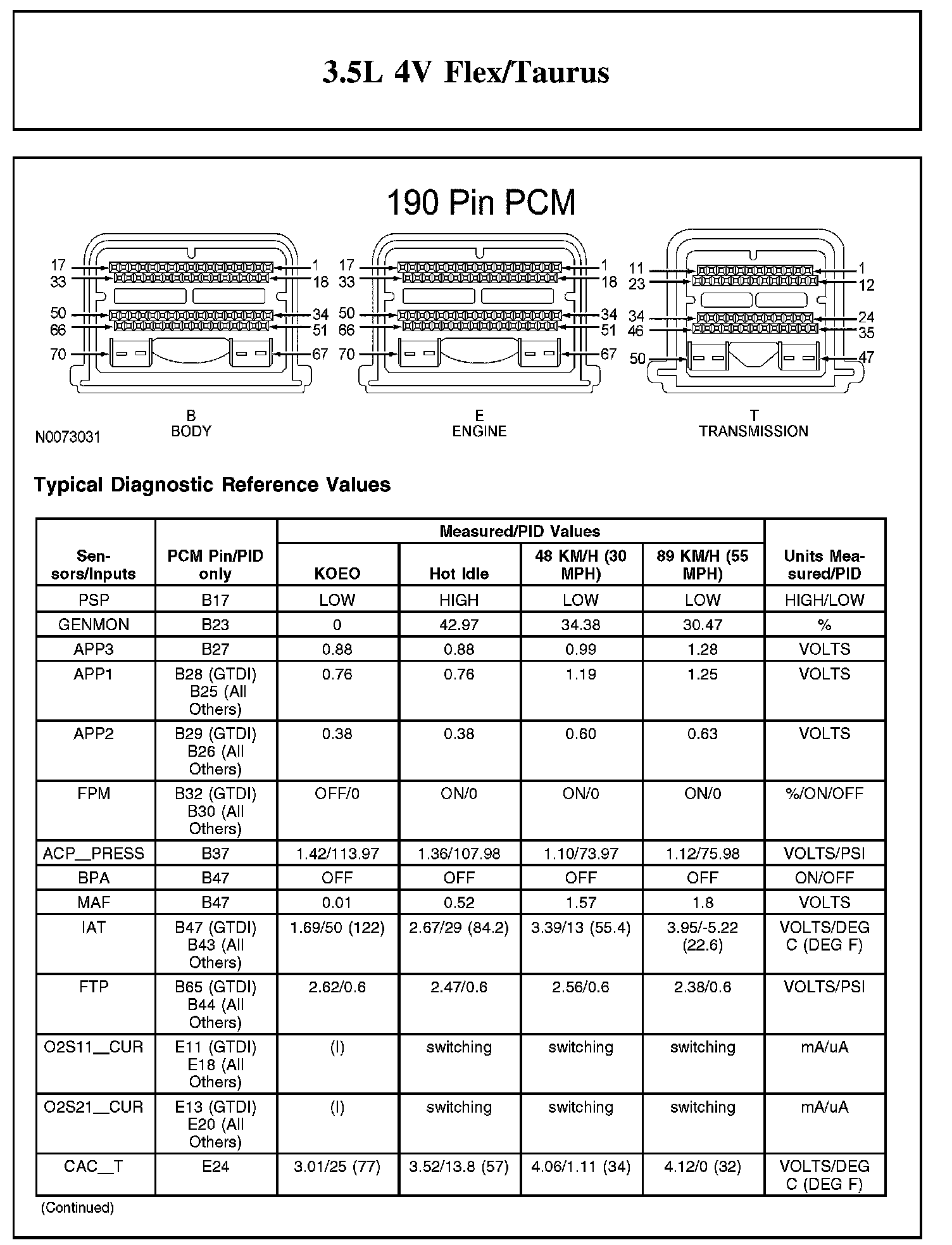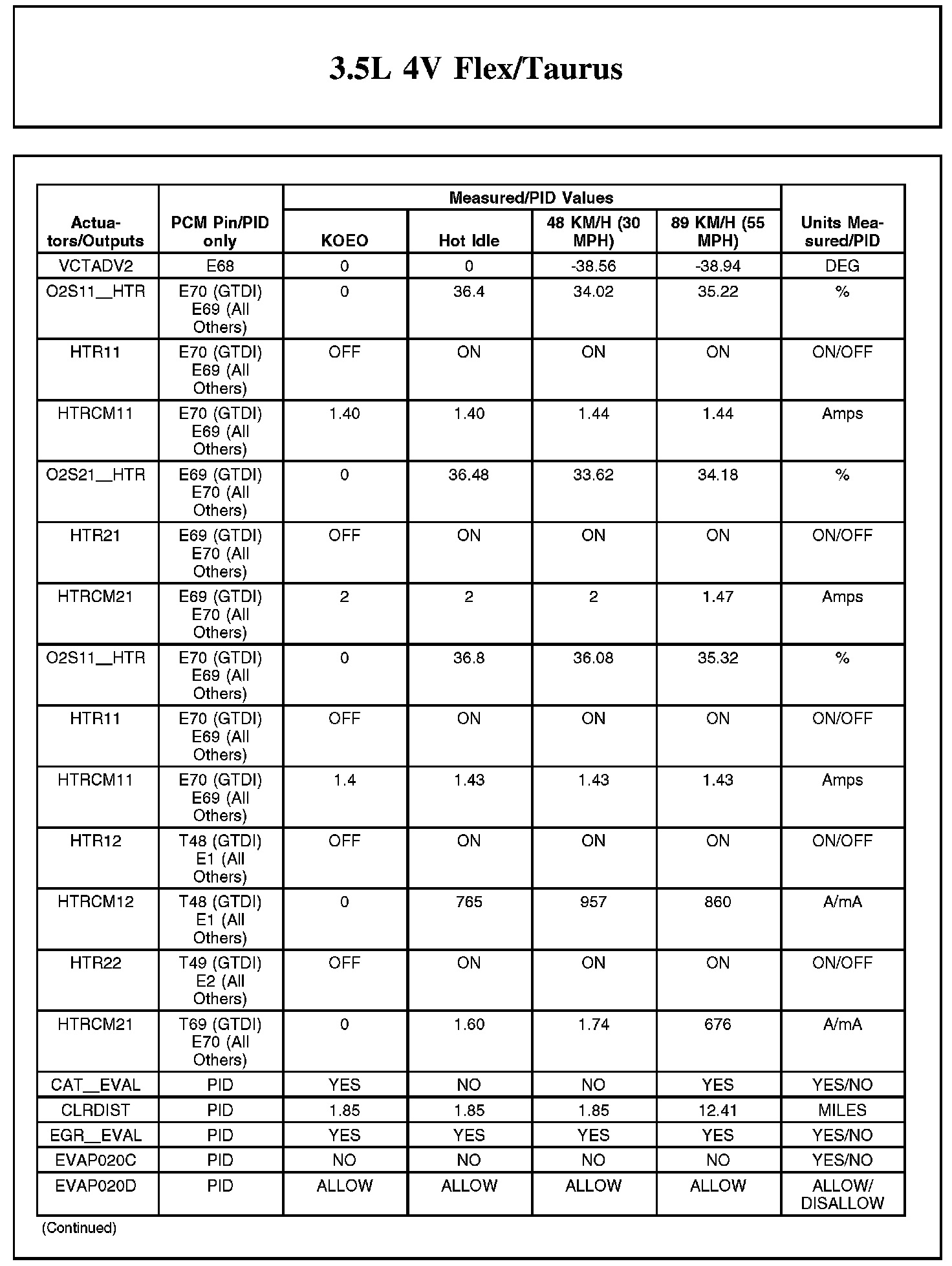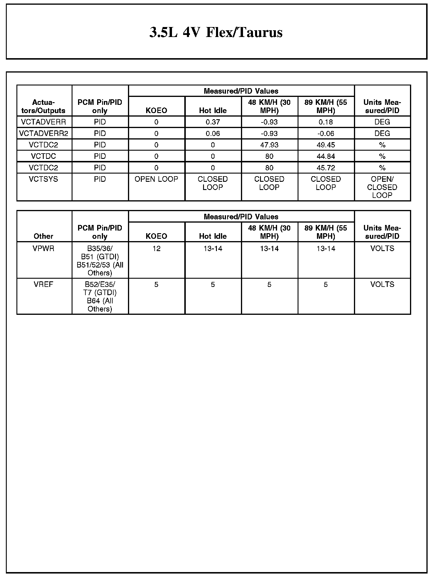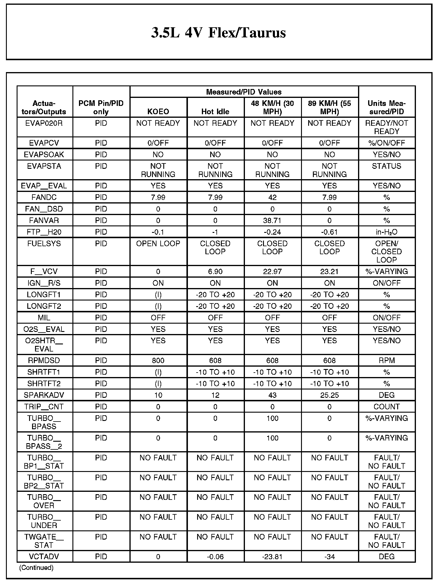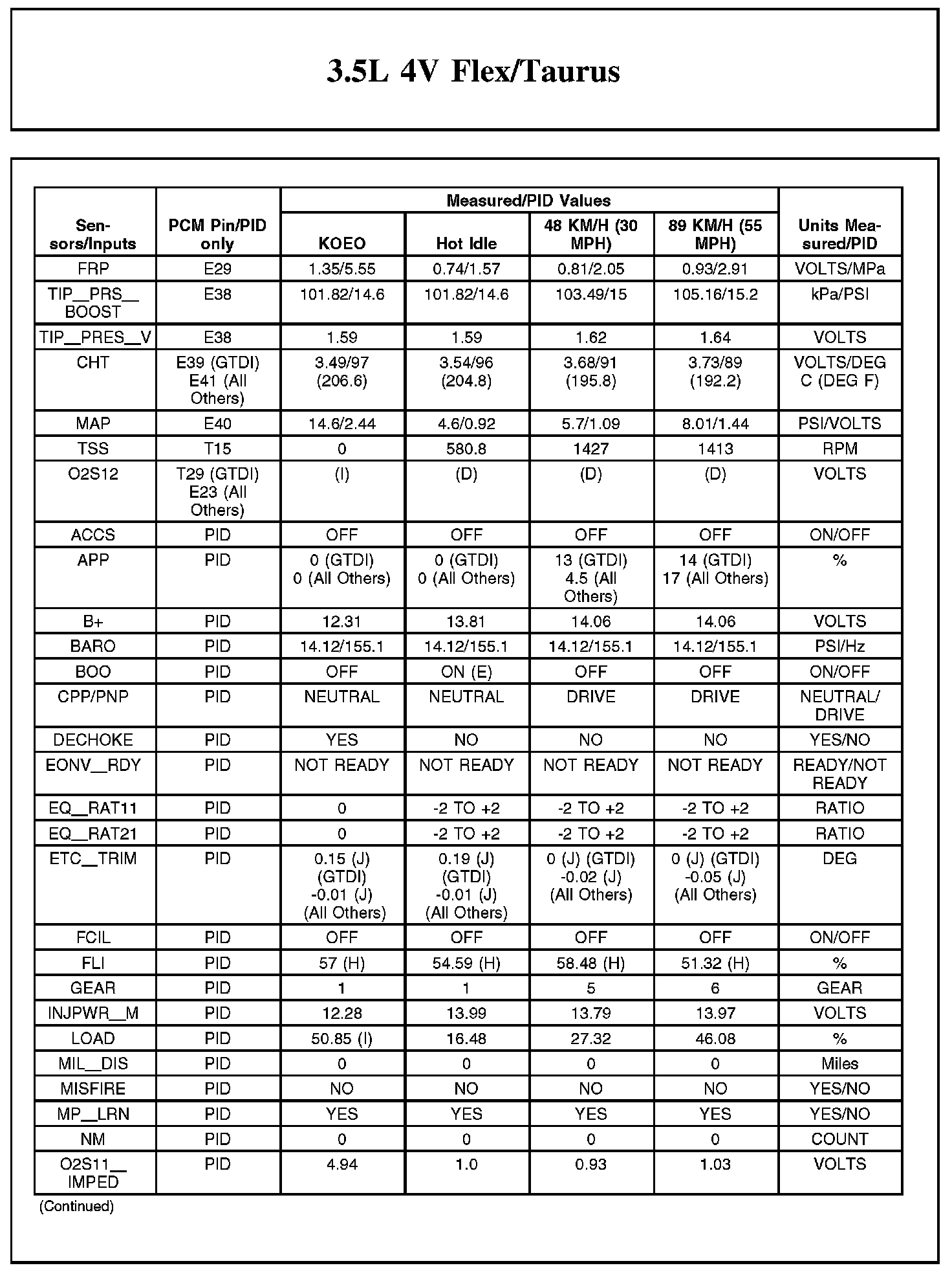 Home >> Ford >> 2012 >> Taurus FWD V6-3.5L >> Repair and Diagnosis >> Powertrain Management >> Computers and Control Systems >> Testing and Inspection >> Scan Tool Testing and Procedures >> Typical Diagnostic Reference Values