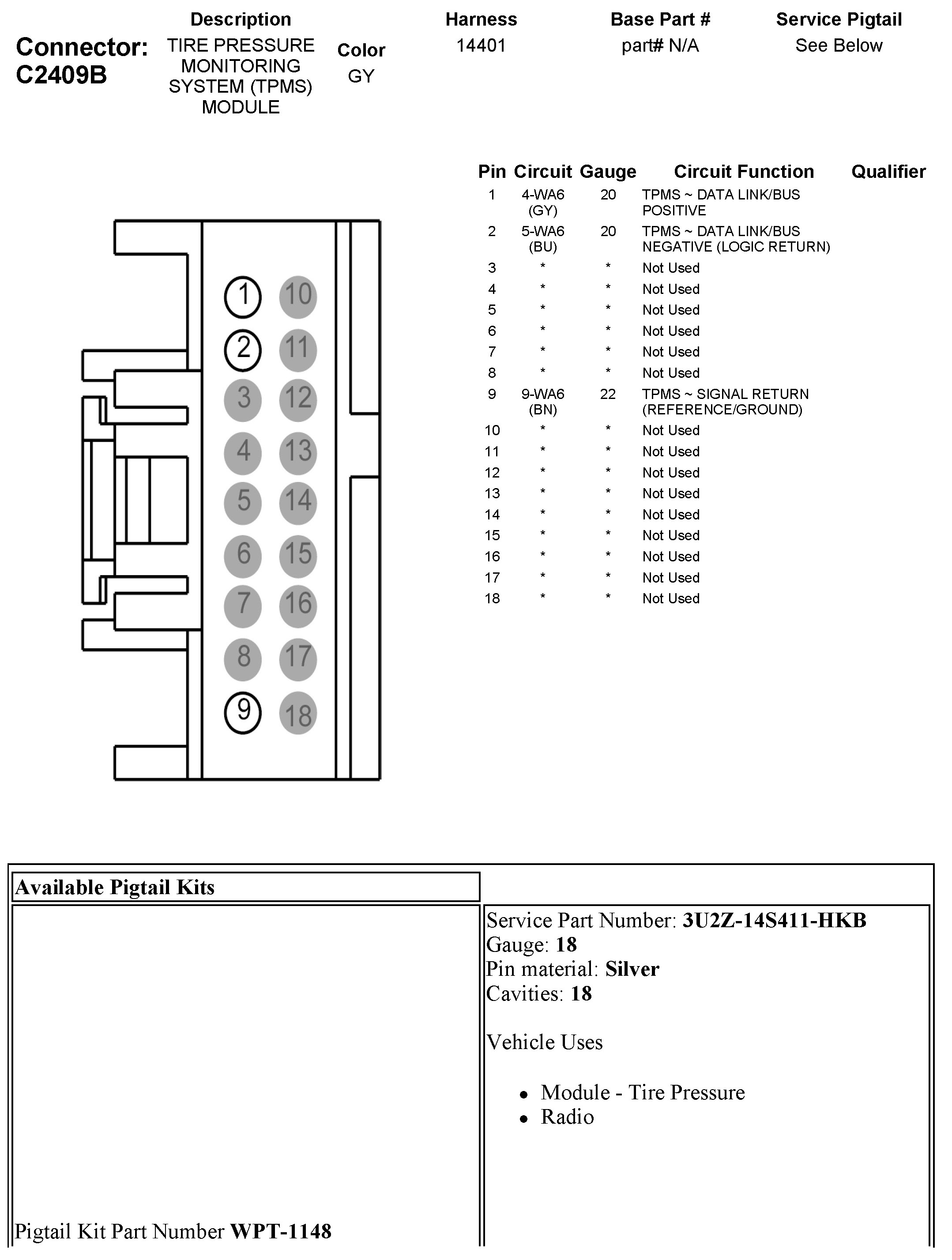 C2409B Tire Pressure Monitoring System (TPMS) Module