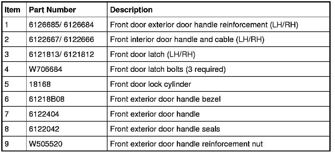 Front Door Handles, Locks and Latches - Exploded View