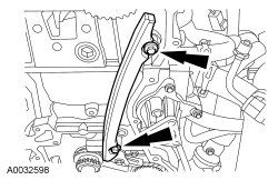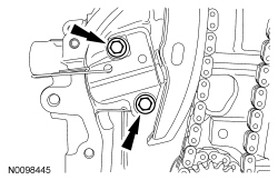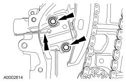 7. Remove the bolts and the LH timing chain guide.