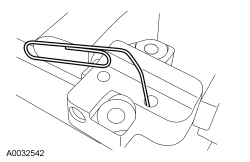 8. Install a paper clip into the hole in the tensioner housing to hold the ratchet assembly and the plunger in during installation.