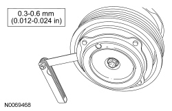 10. Measure and adjust the clutch air gap by removing, replacing or adding A/C clutch disc and hub spacers.