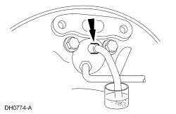 3. Loosen the bleeder screw until a stream of brake fluid comes out. While the assistant maintains pressure on the brake pedal, tighten the bleeder screw.