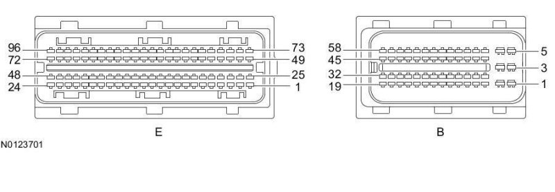 Powertrain Control Module (PCM) Connector - For PCM connector views or reference values, refer to Reference Values.