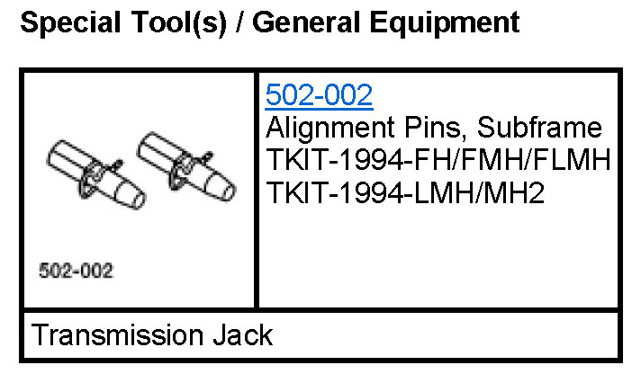 Special Tool(s): 502-002(Alignment Pins, Subframe)
