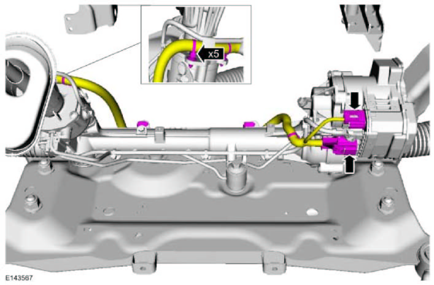 2. NOTICE: Disconnect the battery ground cable anytime the steering gear is being serviced or damage to the steering gear internal power relay may occur resulting in steering gear replacement.