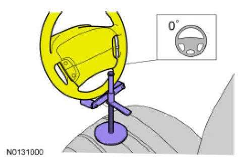 Using a suitable holding device, hold the steering wheel in the straight-ahead position.