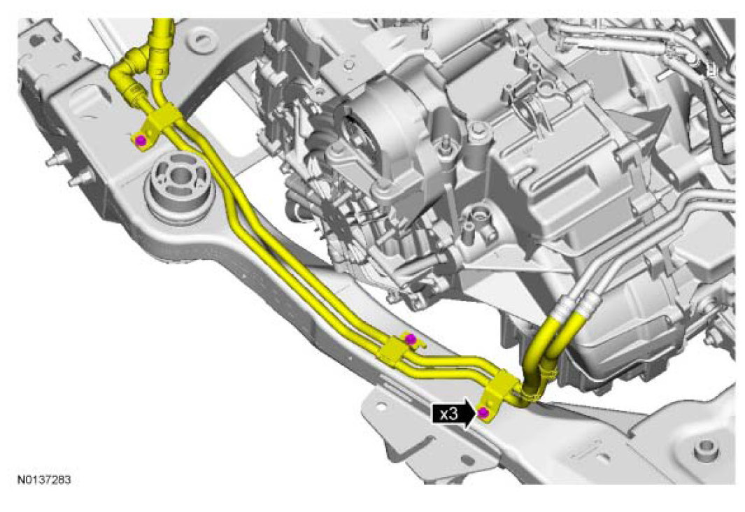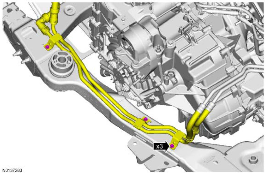 6. If equipped, install the 3 PTU cooler line mounting bracket bolts.
