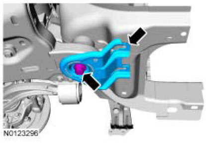 Remove and discard the 2 front subframe forward bolts.