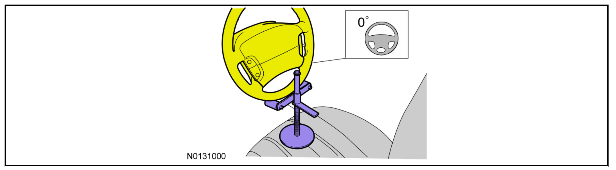 1. NOTICE: Do not allow the steering column to rotate while the steering column shaft is disconnected, or damage to the clockspring may occur. If there is evidence that the steering column has rotated, the clockspring must be removed and recentered.