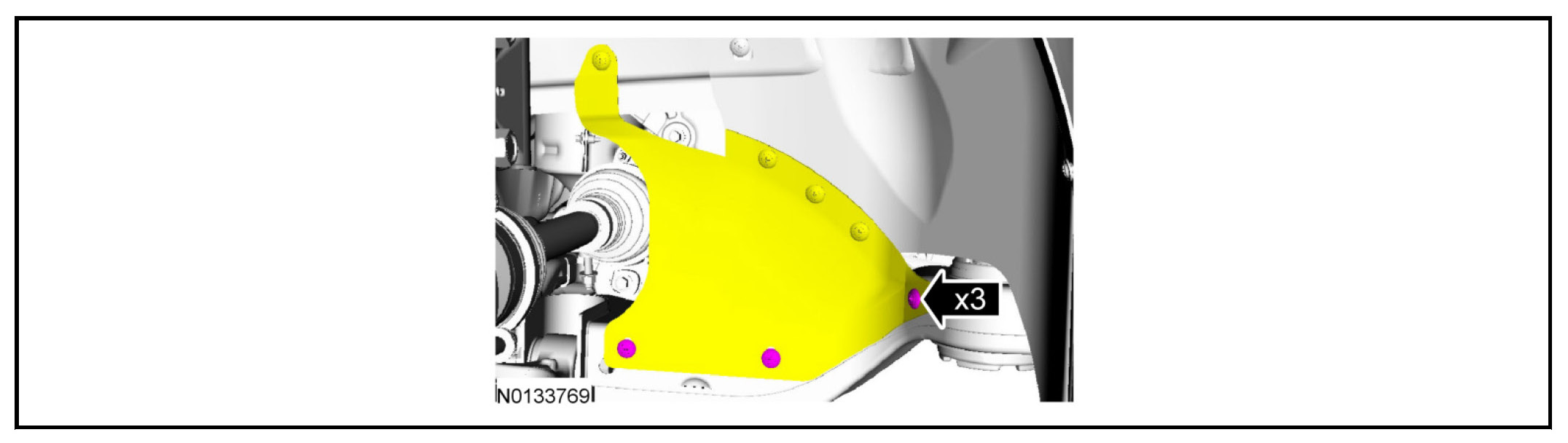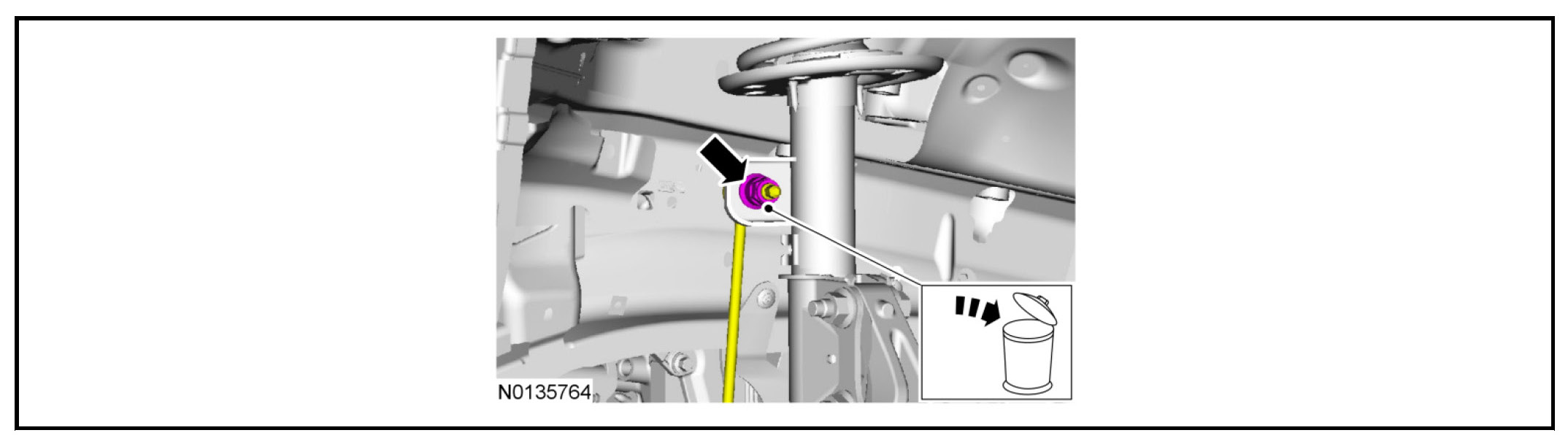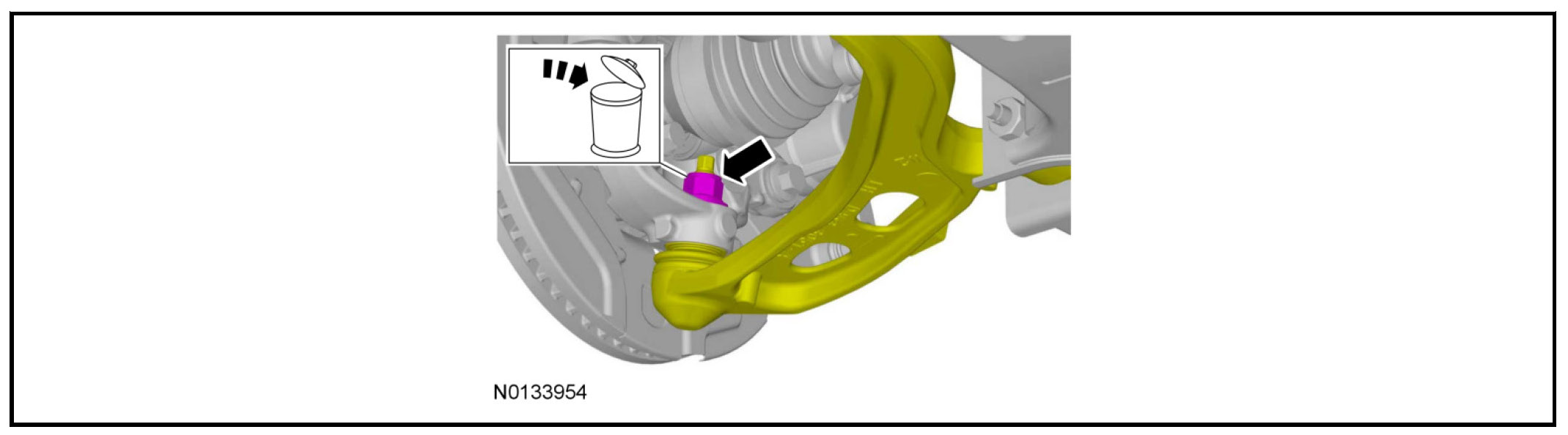 10. NOTICE: Use care when releasing the lower arm and knuckle into the resting position or damage to the ball joint seal or CV boot may occur.
