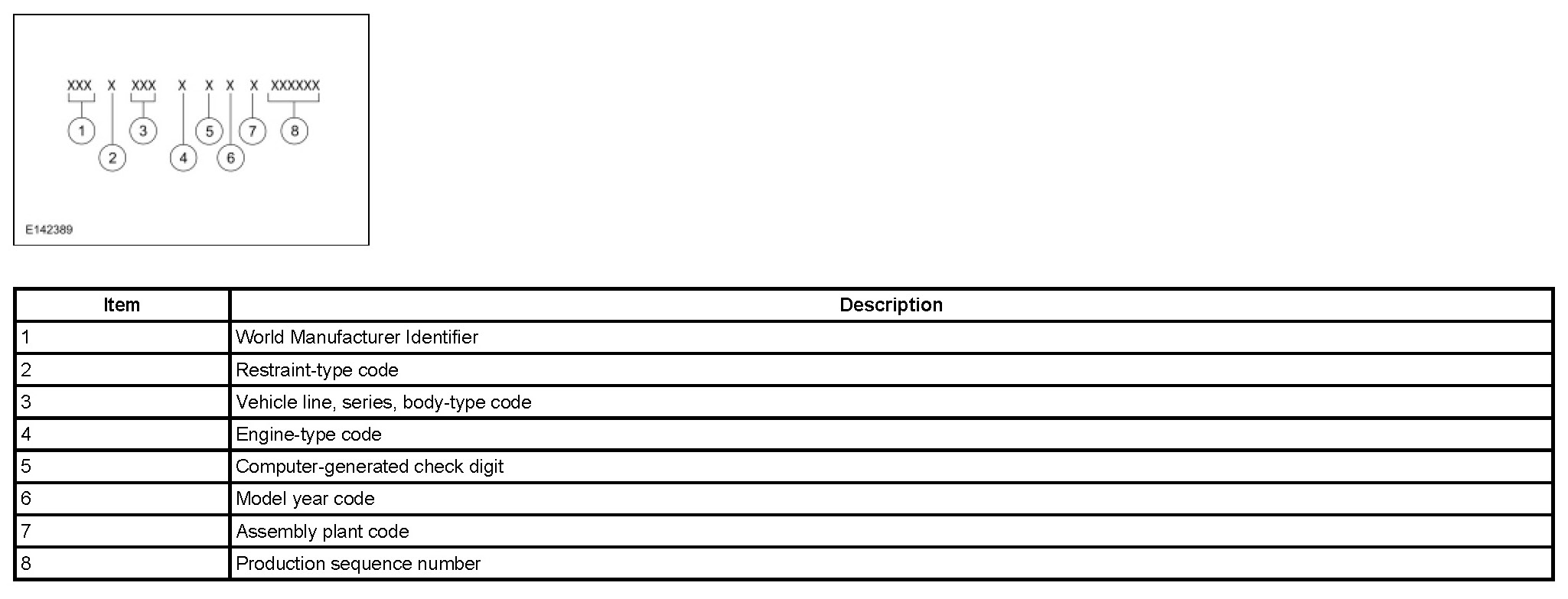 The eighth VIN position identifies the engine type, displacement and number of cylinders.