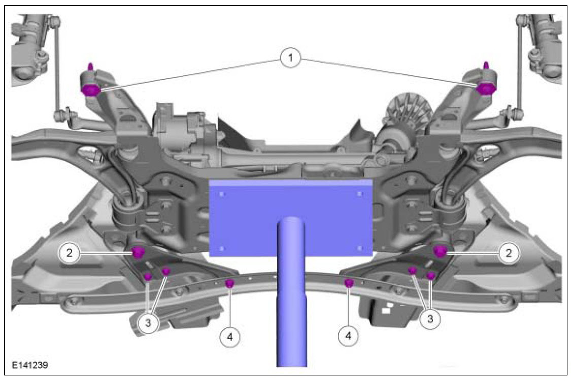 Special Tool(s): 502-002 (Alignment Pins, Subframe)