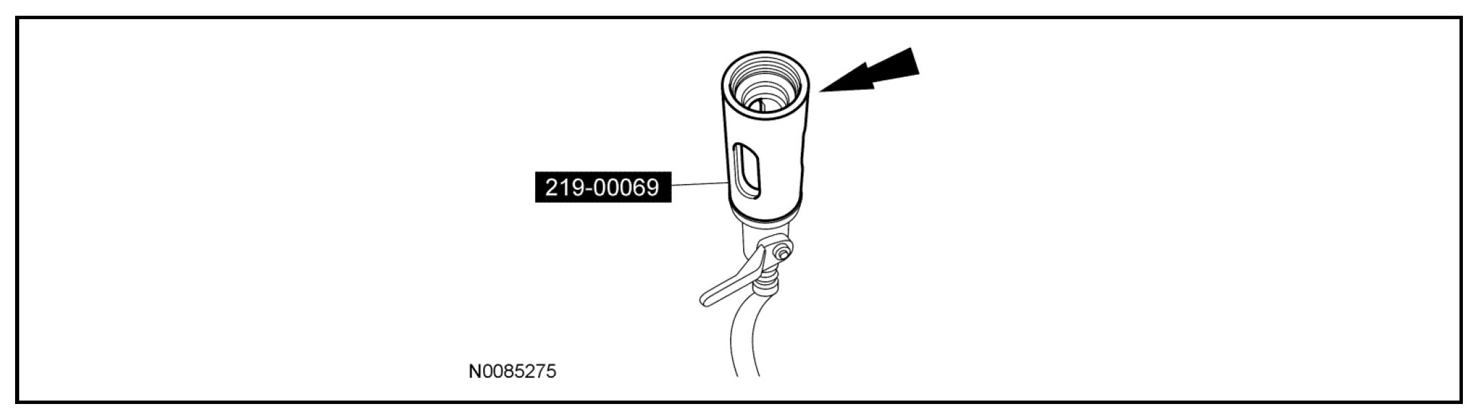 3. Inject the total vehicle PAG oil capacity minus 60 ml (2 fl oz) to the low-side service port during system charging. For the total PAG oil capacity specification, refer to the Specifications table.