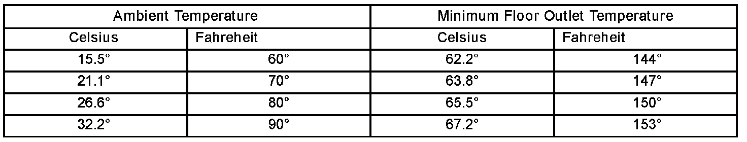 Using a test thermometer, check the temperature of the air being discharged at the floor outlets. Compare the test thermometer reading to the Temperature Reference chart.
