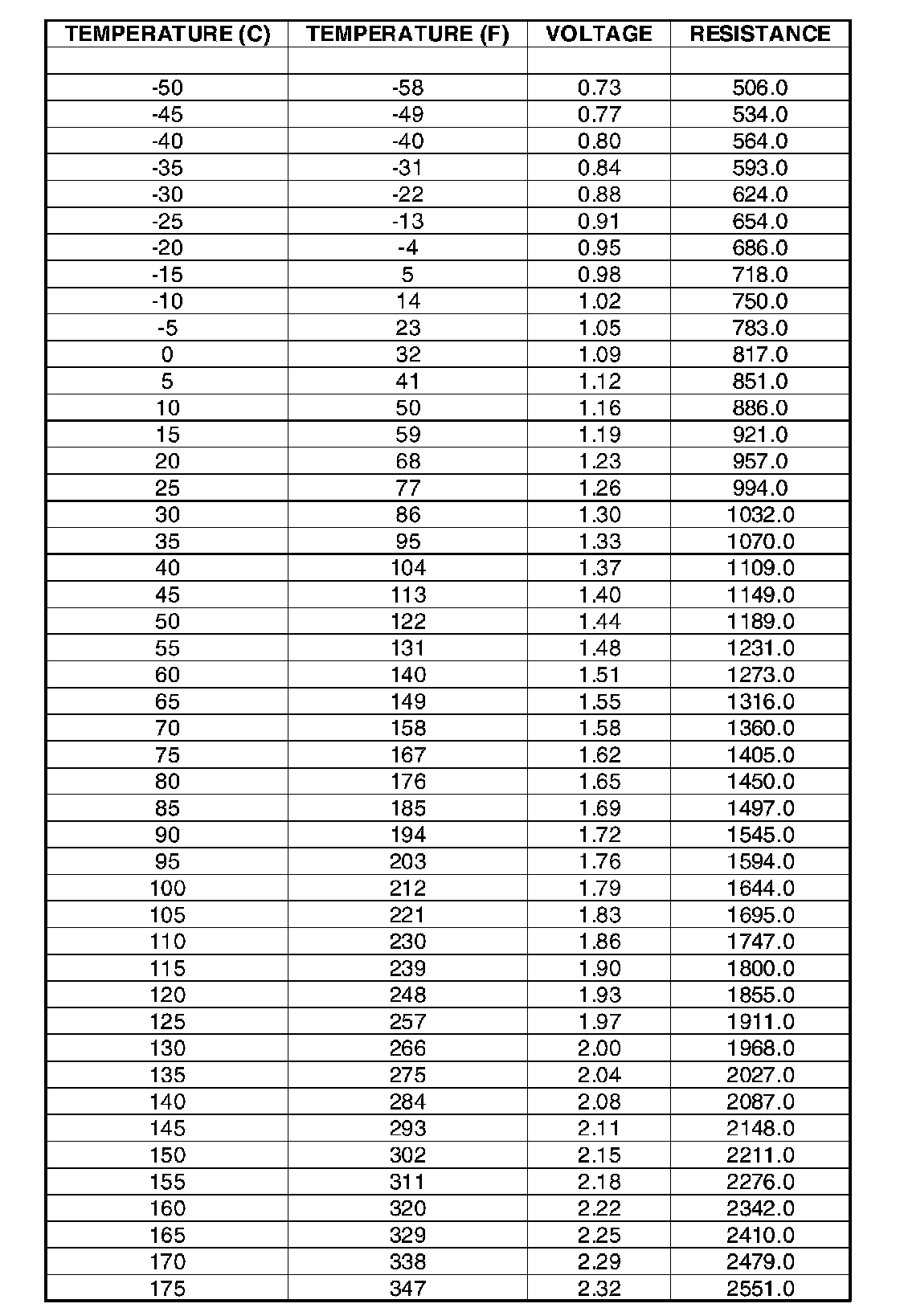 TRANSMISSION TEMPERATURE SENSOR SPECIFICATIONS: