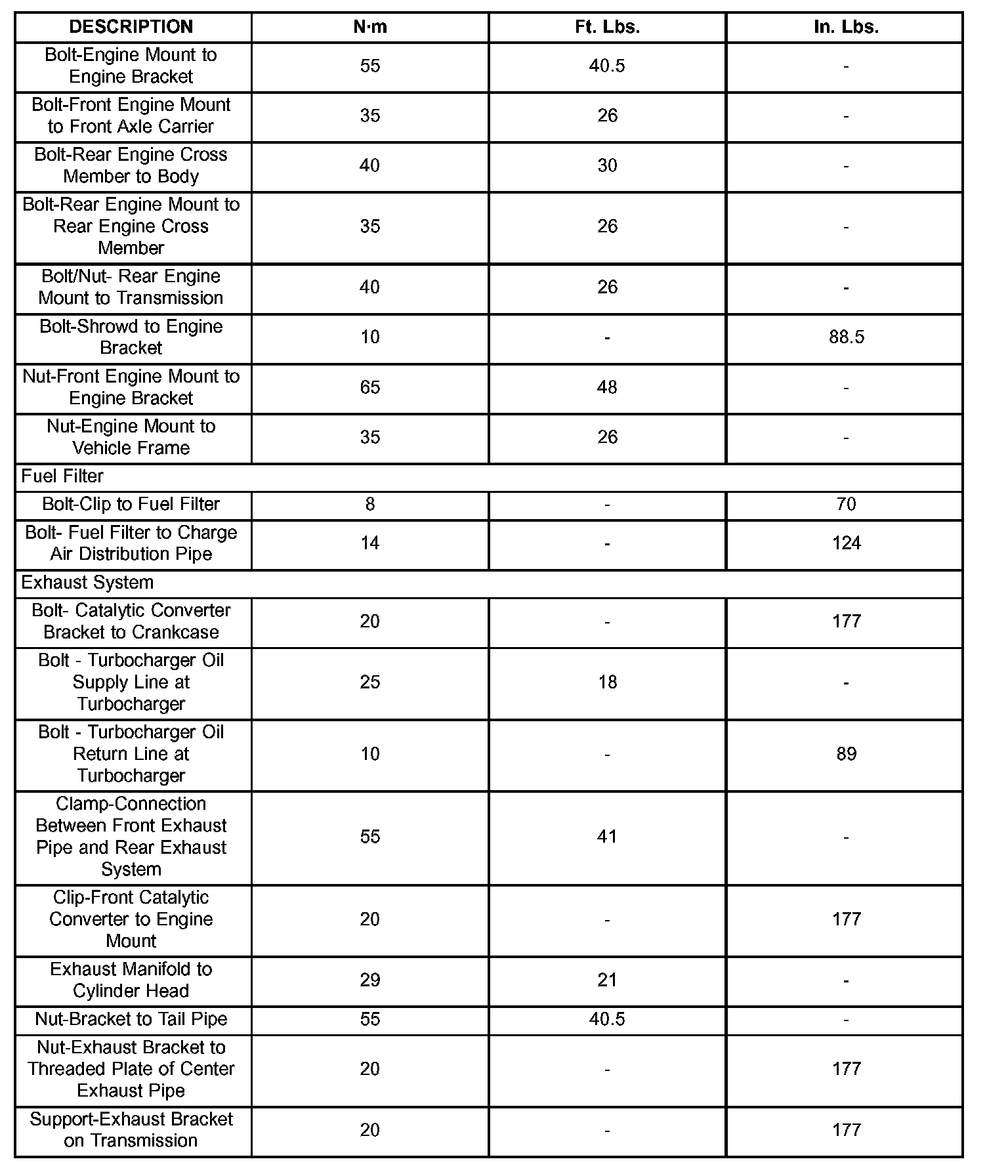Engine Torque Specifications