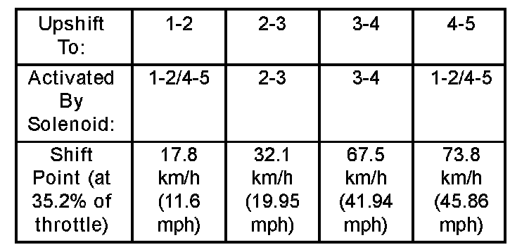 33. Accelerating upshift, which is an upshift under a load. For shift time adaptation for the 1-2 upshift to take place, the transmission must shift from 1st to 2nd in six different engine load ranges vs. transmission output speed ranges.