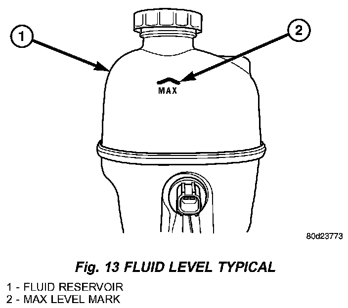 The fluid fill level is indicated on the side of the master cylinder reservoir (Fig. 13).