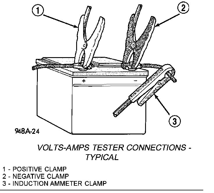 1. Connect volt-ampere tester to battery terminals. See instructions provided by manufacturer of volt-ampere tester being used.