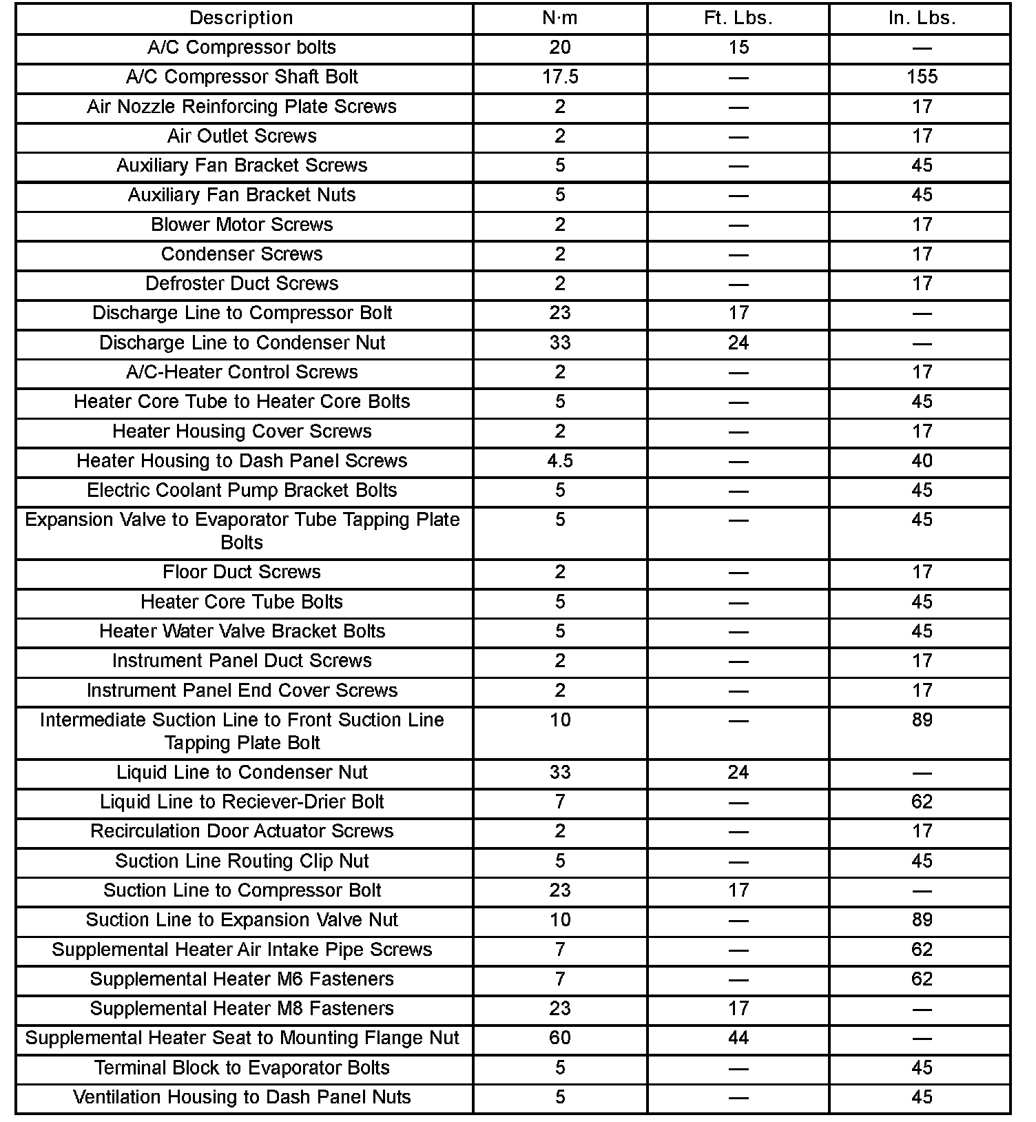 Fastener Torque: