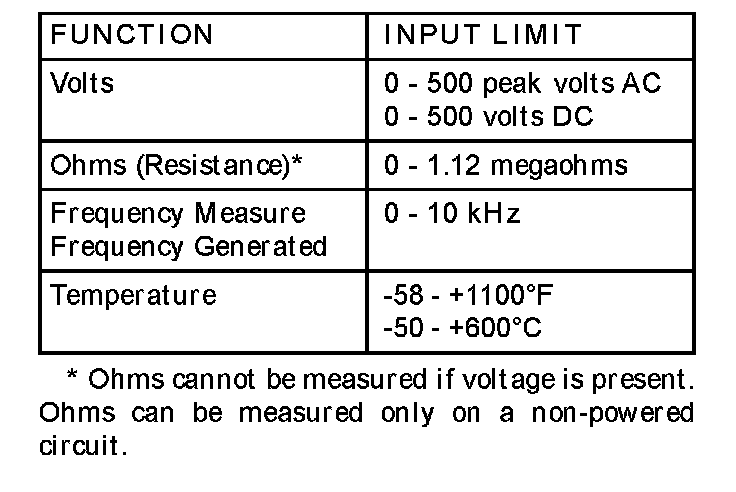 WARNING: EXCEEDING THE LIMITS OF THE DRBIII(R) MULTIMETER IS DANGEROUS. READ ALL DRBIII(R) INSTRUCTIONS BEFORE USING THE MULTIMETER. FAILURE TO FOLLOW THESE INSTRUCTIONS CAN RESULT IN PERSONAL INJURY OR DEATH.
