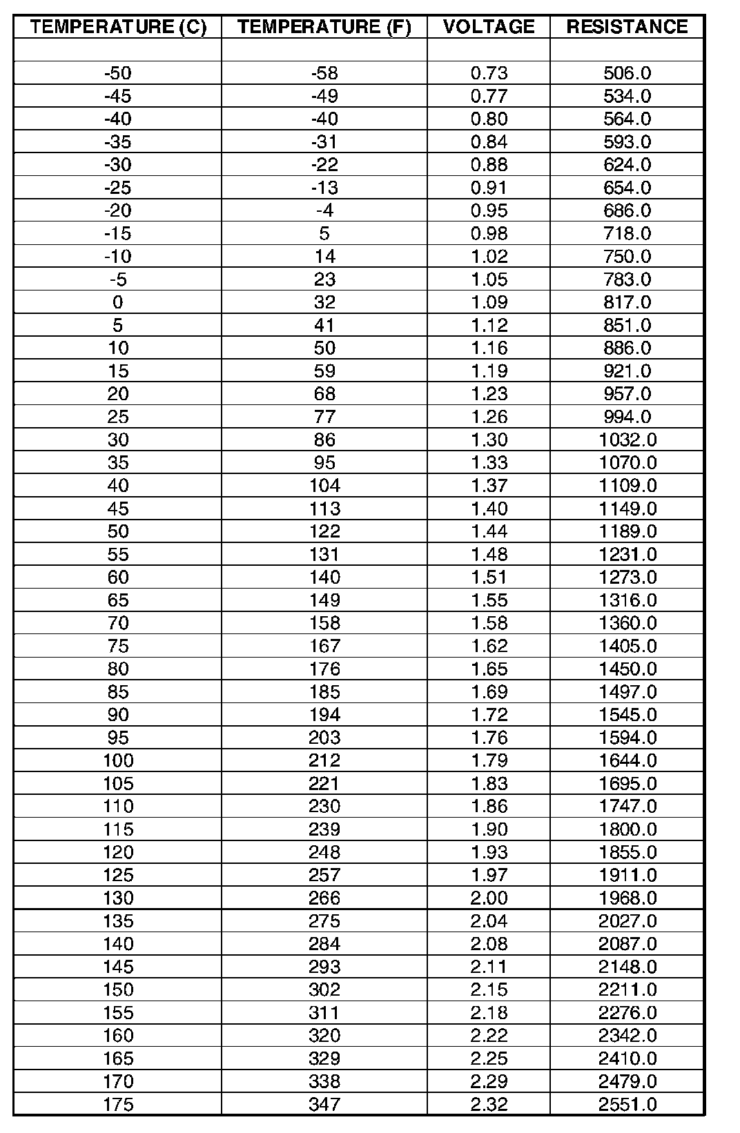 TEMPERATURE/VOLTAGE/RESISTANCE CHART