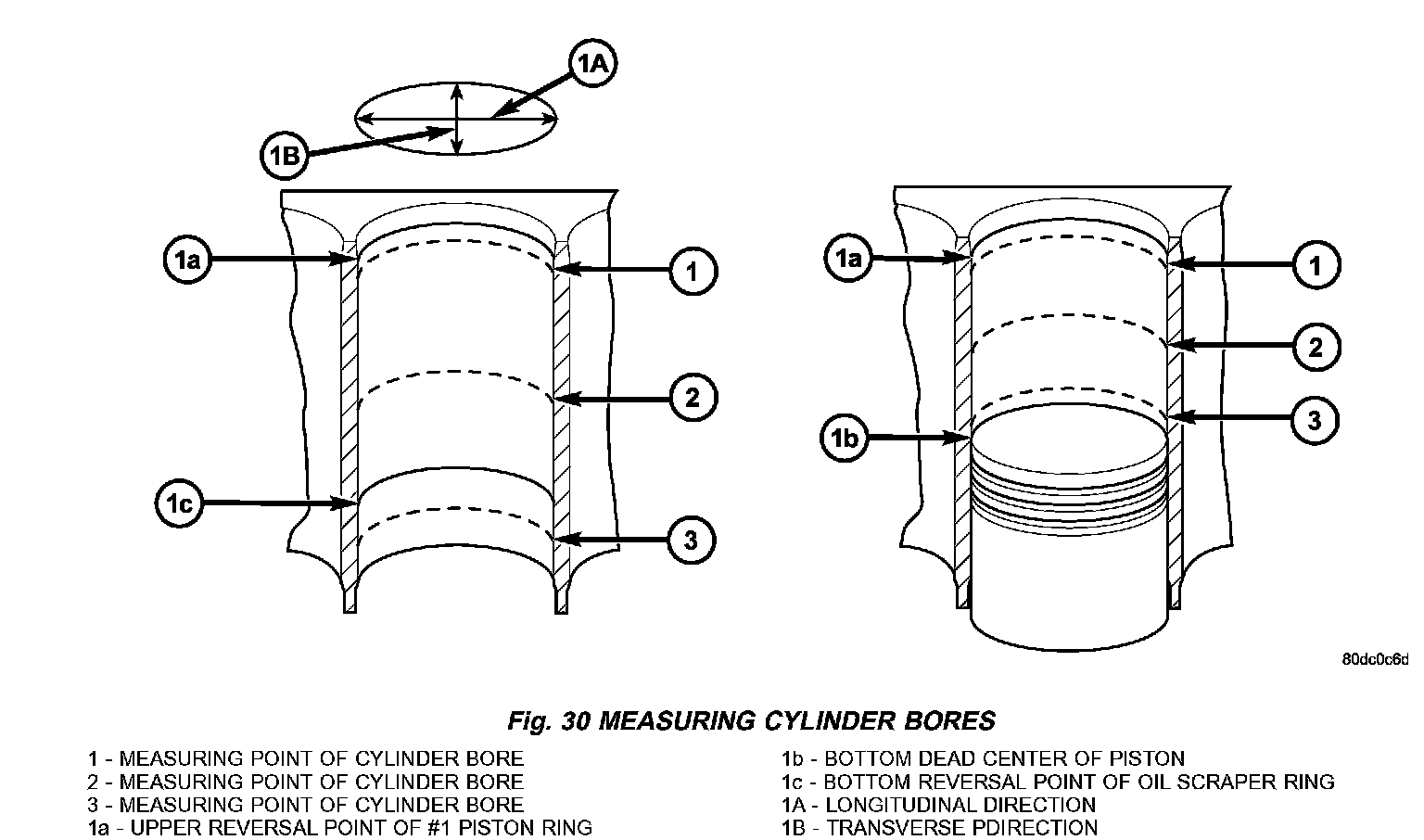 Measure each cylinder at the three measuring points shown (Fig. 30).