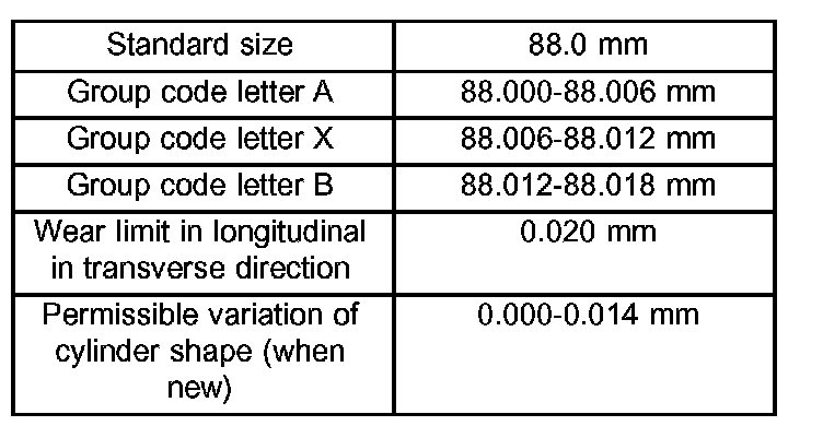 Use the measurement and table below to group cylinder bores: