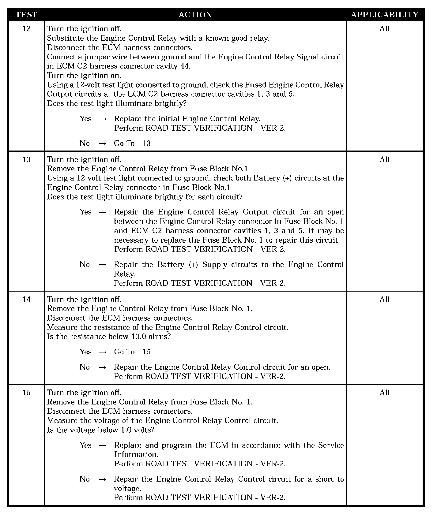 - Engine control relay control circuit open