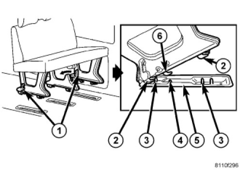 2. Slide seat forwards with some force as far as it will go, until the release levers (3) are heard to engage and all release levers are parallel to the vehicle floor.