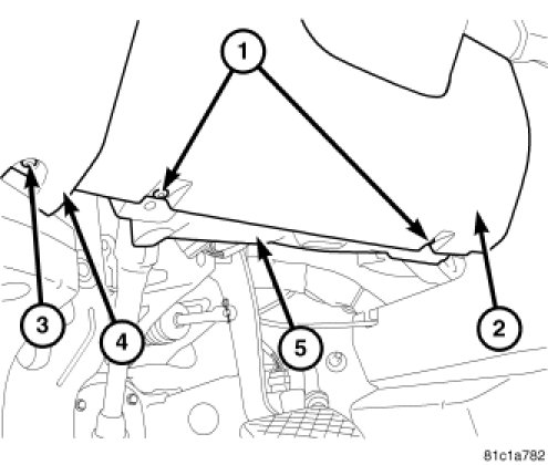 6. Install the screws (3) and the lower steering column opening cover (2), and the side cover (1).