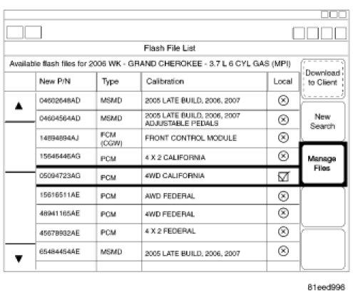 3. From the Flash File List, select the appropriate calibration for the PCM and select "Download to Client"