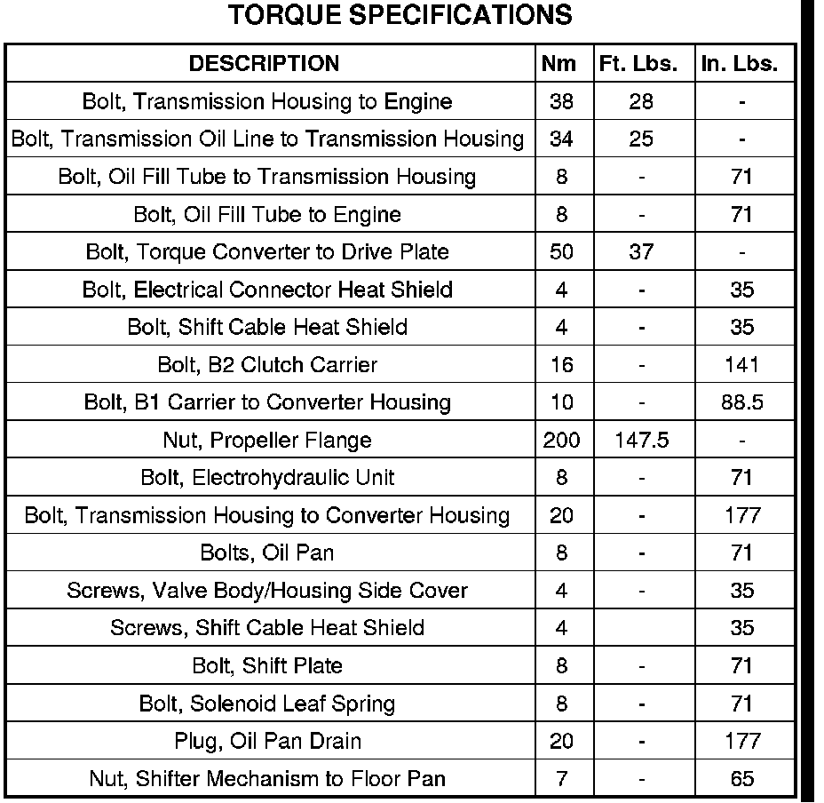 SPECIFICATIONS - NAG1 AUTOMATIC TRANSMISSION