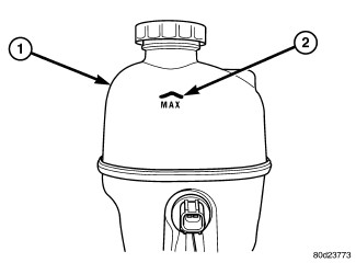 The correct fluid level is to the MAX indicator on the side of the reservoir. If necessary, add fluid to the proper level. Description and Operation