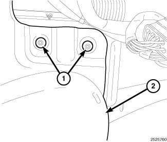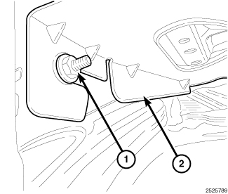 4. Install the battery tray (2). Tighten lower nut (1) to 12 Nm (106 in. lbs.).