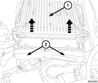 9. Grasp PCM (1) and pull up firmly to release PCM (1) from the retaining bracket.