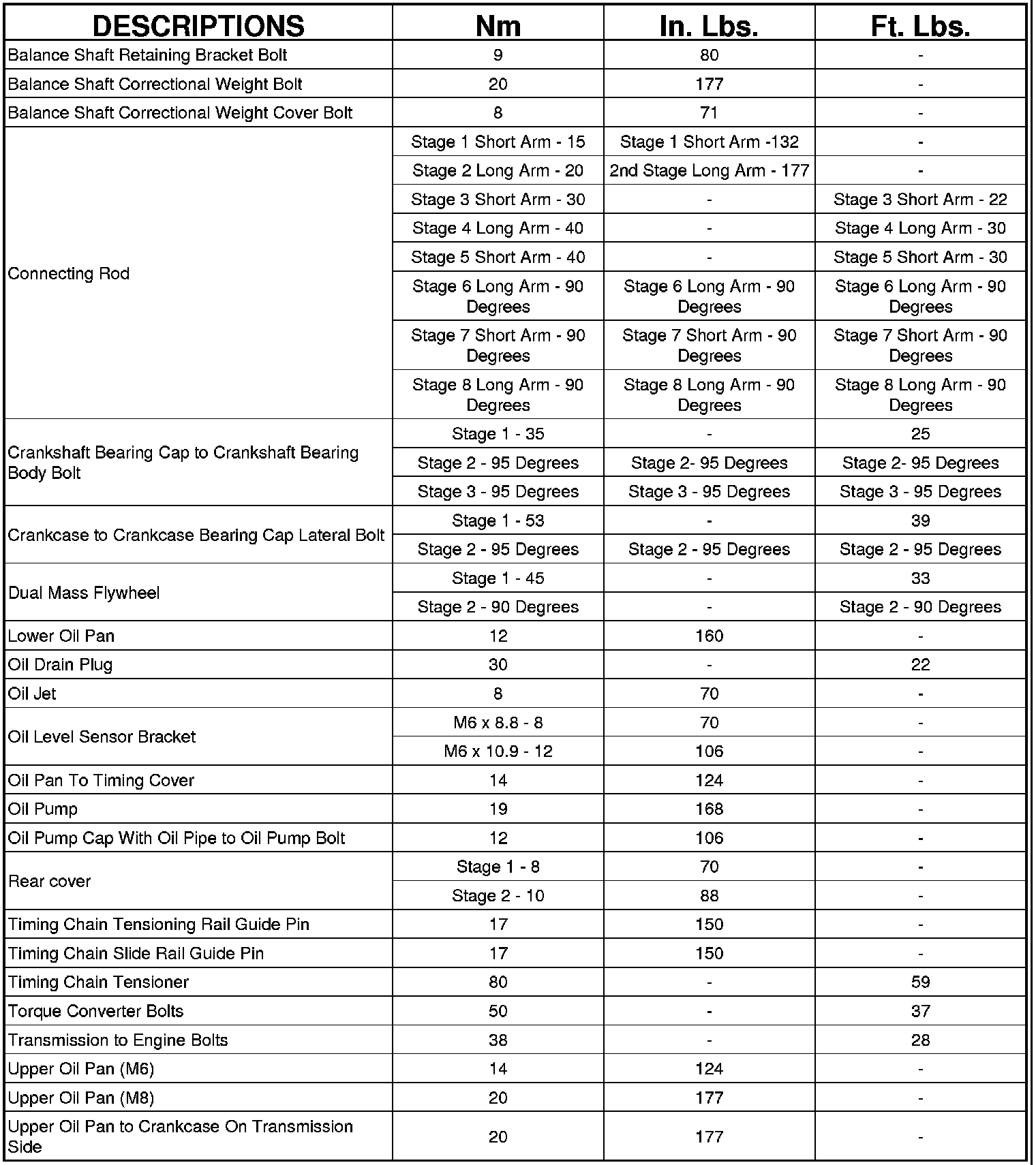 Engine Torque Specifications