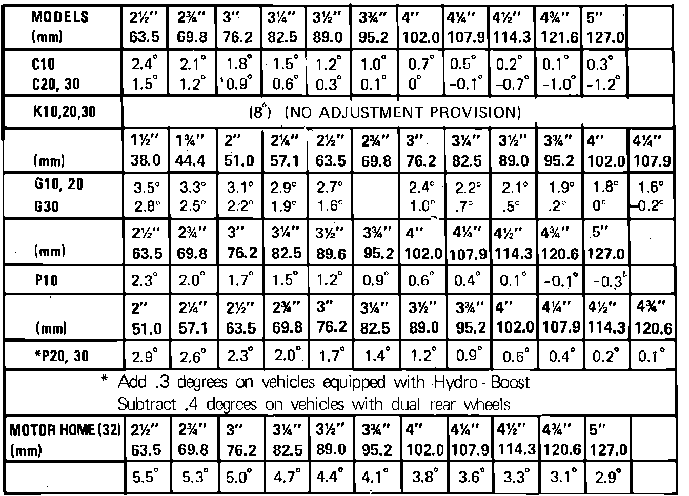 6. The frame corrected angle should correspond to the recommended angle on the chart within plus or minus 1/4°. Make necessary changes to bring caster angle within limits.
