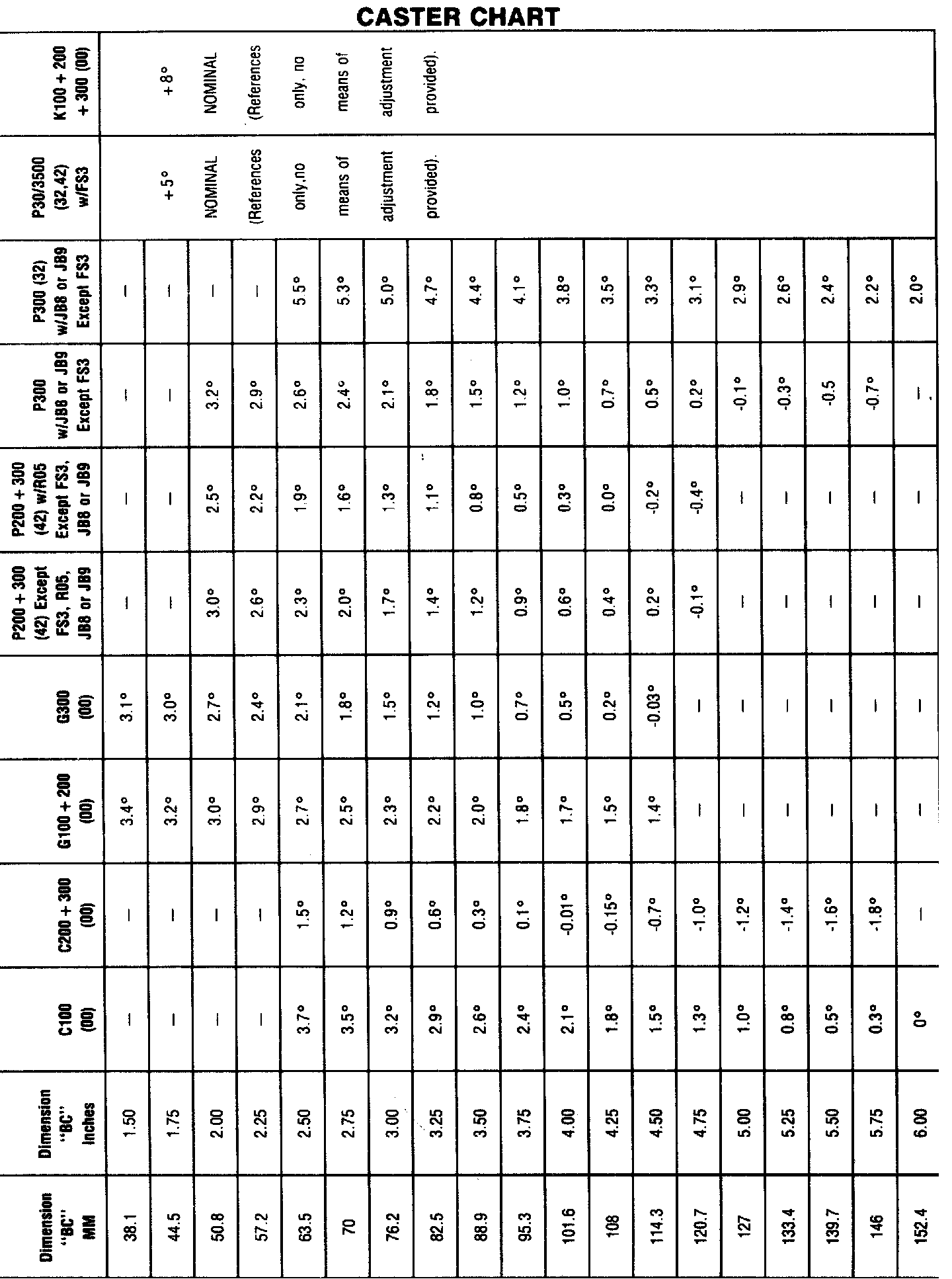 CASTER CHART