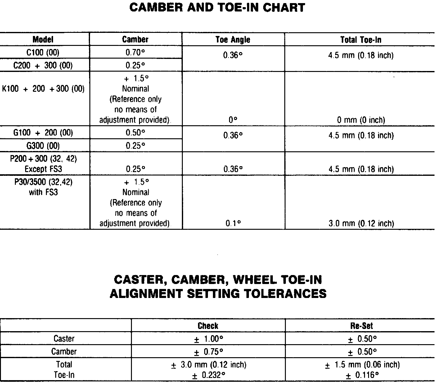 CASTER, CAMBER, WHEEL TOE-IN