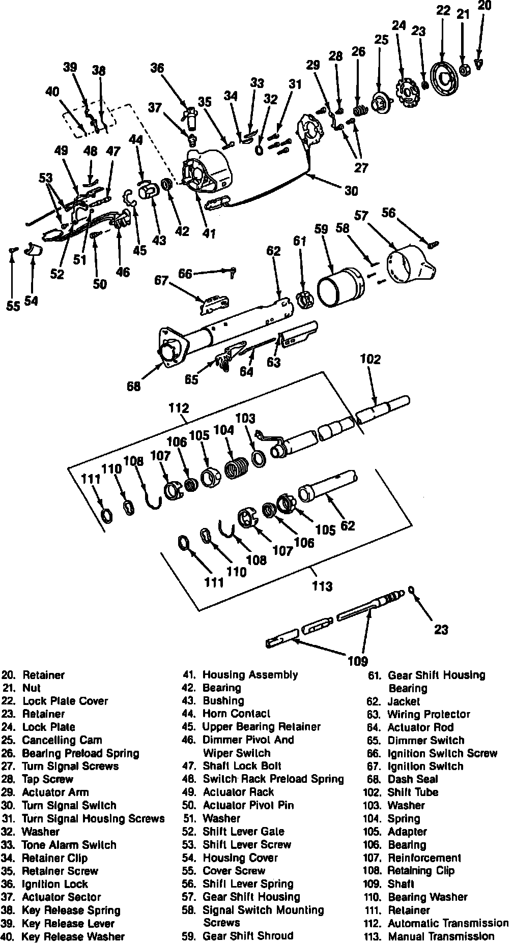 Fig. 14 Exploded view of standard steering column: