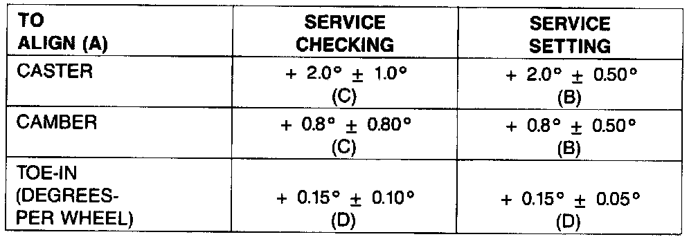 FRONT ALIGNMENT SPECIFICATIONS