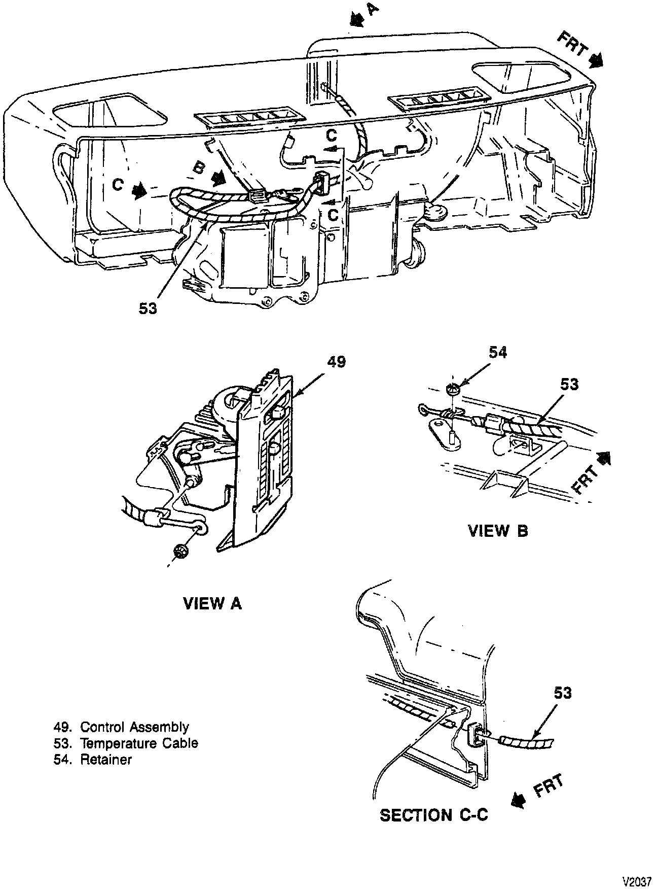 2. Cable (53) from control assembly (49).