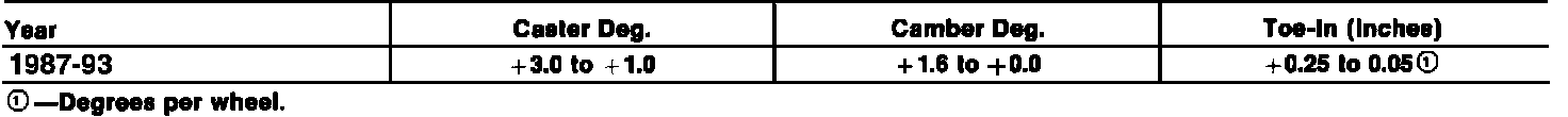 Front Wheel Alignment Specifications: