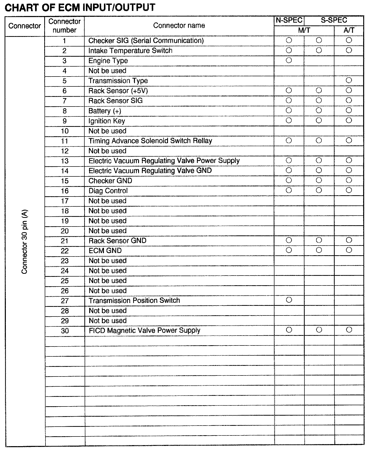 Chart of ECM Input/Output