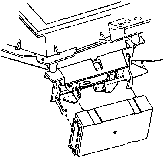 1. Install the body control module to the bracket at an angle under the wide hook retainer, with the label facing away from the bracket.